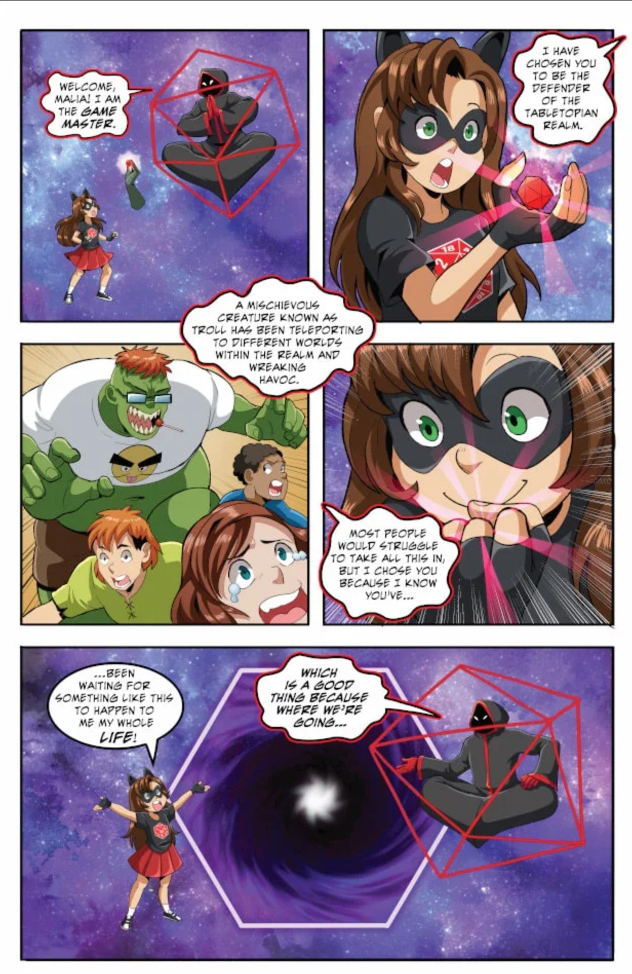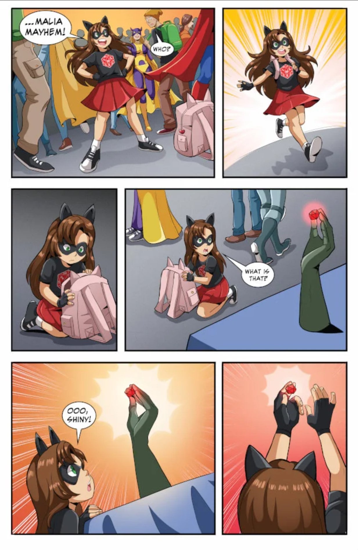 It all starts here! Witness the origin of Malia Mayhem and how she first got to the Tabletopian Realm. There are also character bios for the cast. This is the perfect jumping on point for our flagship character!