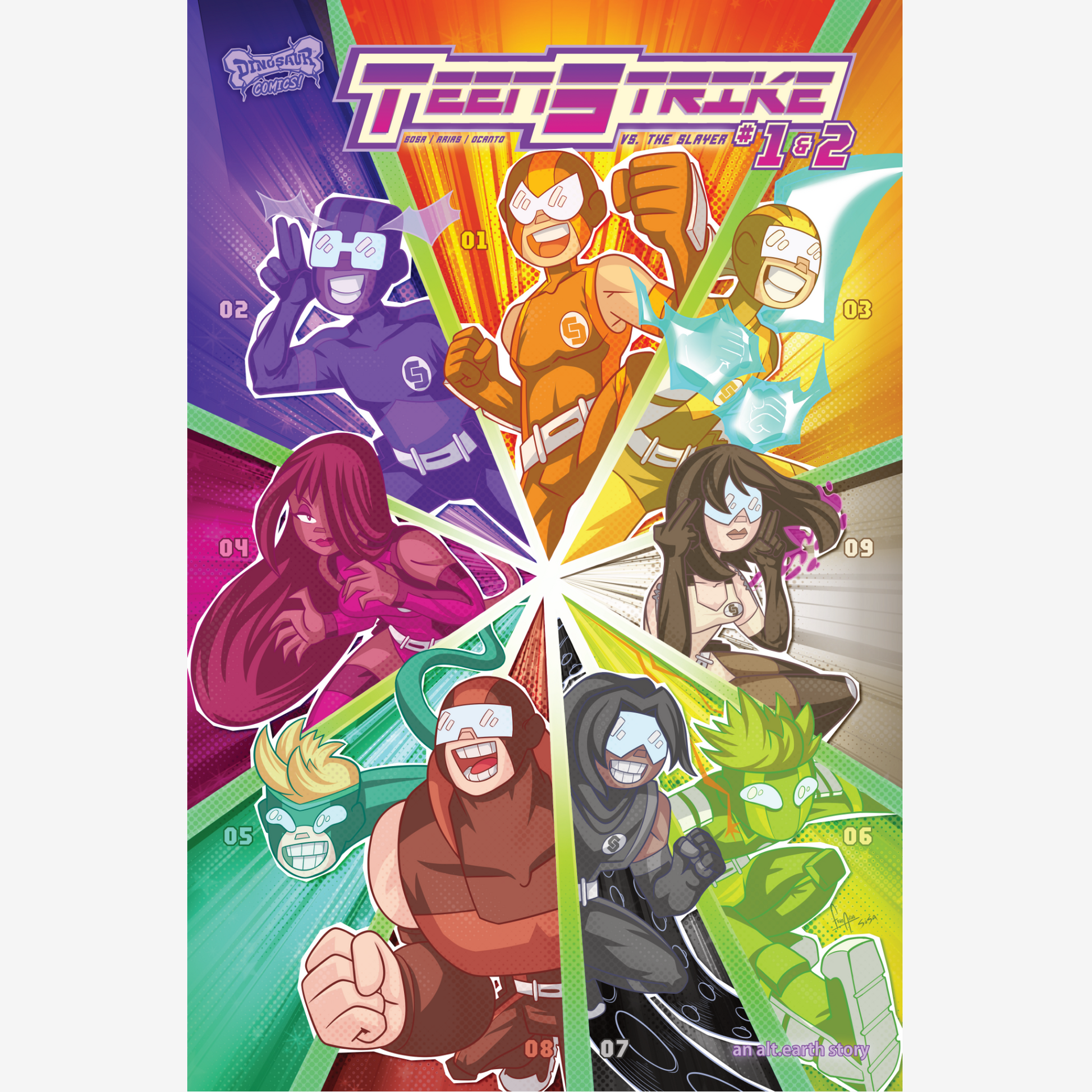 TeenStrike #1 & #2 is a 60 page comic book combining the first two issues to bring you one massive compilation that introduces you to the world of TeenStrike! Come along as we set up the first story arc (TeenStrike vs. The Slayer) in this first, MEGA ISSUE! The first in this seven issue story arc.