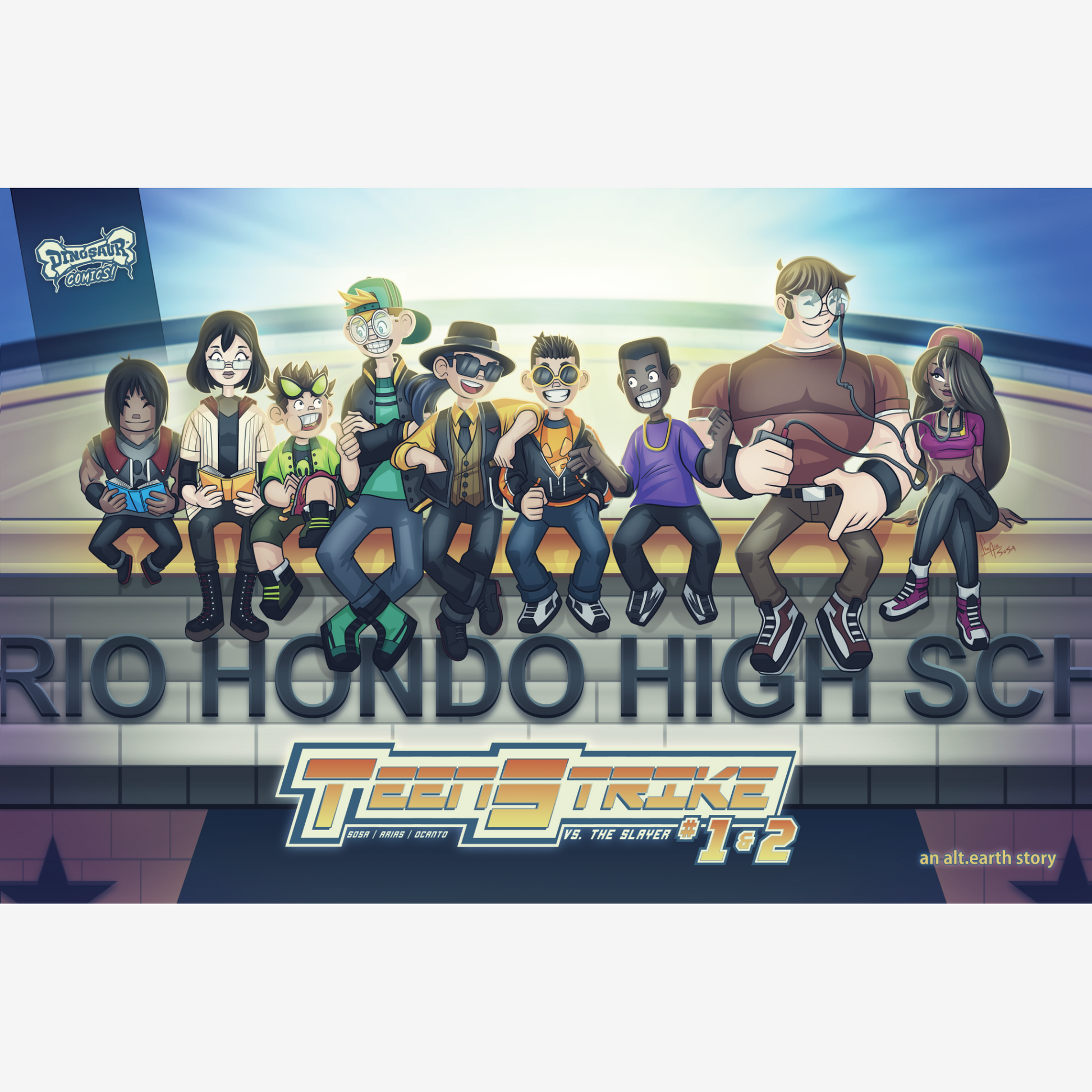 TeenStrike #1 & #2 is a 60 page comic book combining the first two issues to bring you one massive compilation that introduces you to the world of TeenStrike! Come along as we set up the first story arc (TeenStrike vs. The Slayer) in this first, MEGA ISSUE! The first in this seven issue story arc.